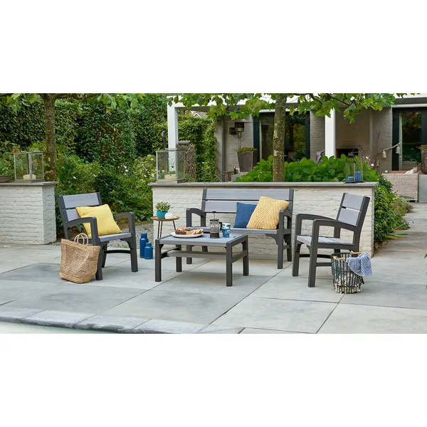 A Montero Set egy kényelmes modern, minimalista design ihlette kerti bútor szett. A szett a kényelem, a modern stílus és a kiváló minőségű anyagok kombinációja. Két kényelmes székből, egy kétszemélyes, praktikus padból és egy optimális méretű asztalból áll. Ennek a termékcsaládnak egyedülálló előnye a természetes fát imitáló felület. Ezek a bútorok ellenállnak a kedvezőtlen időjárási körülményeknek és az UV-sugaraknak. Könnyen tisztán tarthatók, egyszerűen összeszerelhetők.