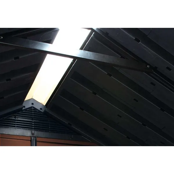 A NEWTON 757 megerősített szerkezete védelmet nyújt az eső, szél és havazás ellen, így a benne tárolt szerszámok, bútorok és egyéb berendezések mindig biztonságban lesznek. A tartós, szilárd padlózat megakadályozza, hogy a sár és az esővíz bejusson, ezzel garantálva a tárolt eszközök tisztaságát és szárazságát. A nagy ablakok és az egész hosszban beépített fénycső természetes fényt biztosítanak, míg a beépített szellőzőrendszer gondoskodik a friss levegőről, ami ideális körülményeket teremt barkács- és egyéb kézműves munkákhoz.