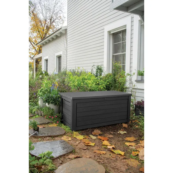 A tágas Northwood 630L-es tárolóban elfér az összes szükséges szerszám, a kerti bútorok párnái, más apróbb kiegészítők, takarók és a függőágy is. A tároló fához hasonló felületű, ami lehetővé teszi, hogy a bútor tökéletesen illeszkedjen a természetes környezetbe. A legjobb minőségű műanyagból készült láda hatékonyan védi a tárolt tárgyakat a nedvességtől, a szennyeződéstől és az UV sugárzástól. A fedélnyitást megkönnyítő mechanizmus kétségtelenül a termék egyik nagy előnye. Strapabíró kialakításának köszönhetően a tároló láda két személy ülőhelyeként is használható. Könnyen tisztítható és egyszerűen összeszerelhető termék.