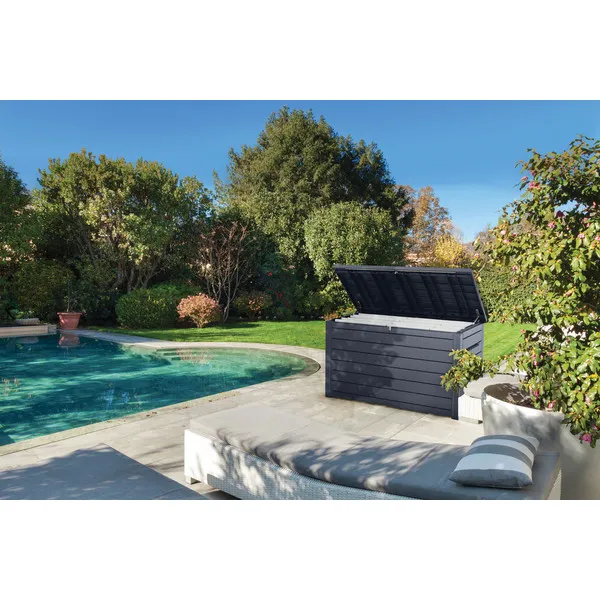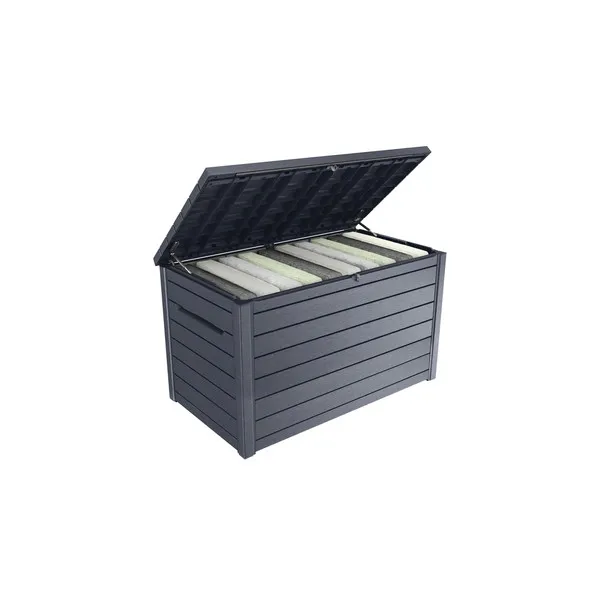 Az Ontario Box stílusos kerti tároló fő előnyei a nagy űrtartalma és az egyszerű összeszerelése. Ezen előnyöknek köszönhetően a kerti párnák, a plédek valamint a nélkülözhetetlen kerti szerszámok könnyen megtalálják a helyüket a praktikusan felosztható tárolóban. A termék vitathatatlan előnye továbbá a fedélnyitást megkönnyítő mechanizmus is.