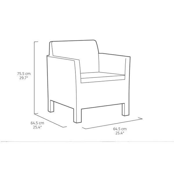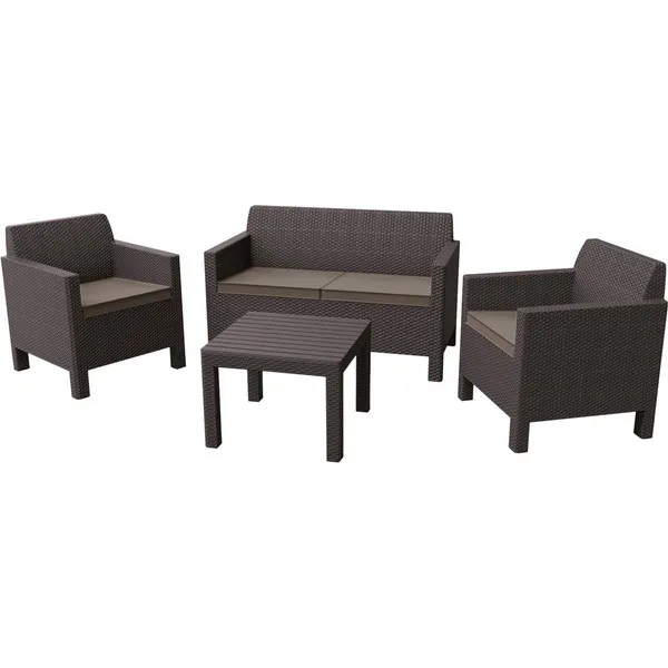 A teraszok, az erkélyek és a kertek mind olyan helynek számítanak, ahol szívesen találkozunk a barátainkkal, családtagjainkkal. Az ott eltöltött időt még kedvesebbé teheti a tér stílusos berendezésével és a kényelmes kerti bútorokkal. A kis asztallal kapható Orlando szett egy elegáns bútor szett fonott rattant imitáló felülettel, amely két fotelből, egy kétszemélyes kanapéból és egy kis asztalból áll. A bútorok magas minőségű műanyagból készültek és ellenállnak az időjárás viszontagságainak és az UV sugárzásnak is.