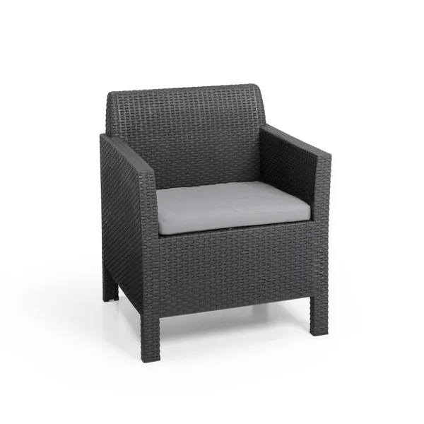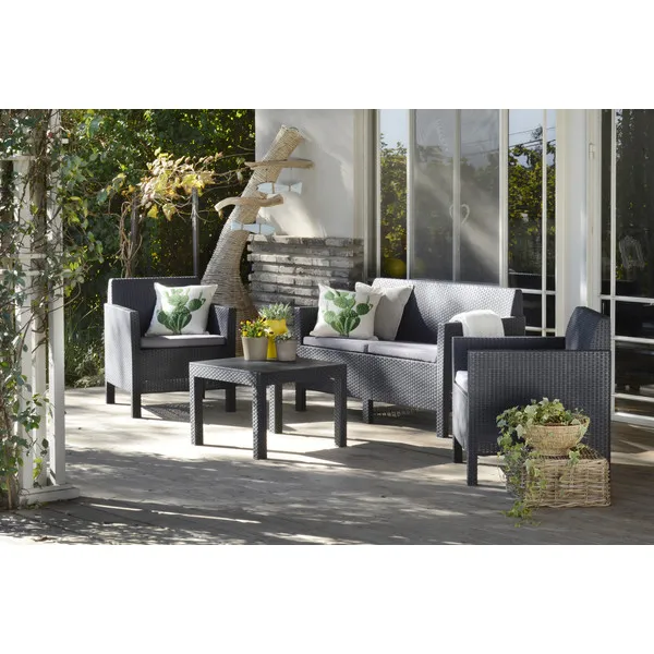 A teraszok, az erkélyek és a kertek mind olyan helynek számítanak, ahol szívesen találkozunk a barátainkkal, családtagjainkkal. Az ott eltöltött időt még kedvesebbé teheti a tér stílusos berendezésével és a kényelmes kerti bútorokkal. A kis asztallal kapható Orlando szett egy elegáns bútor szett fonott rattant imitáló felülettel, amely két fotelből, egy kétszemélyes kanapéból és egy kis asztalból áll. A bútorok magas minőségű műanyagból készültek és ellenállnak az időjárás viszontagságainak és az UV sugárzásnak is.