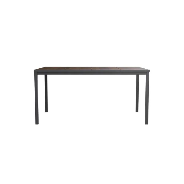 Ez az asztal nemcsak melegséget és eleganciát sugároz különleges famintás felületével, hanem masszív fémvázas kialakításának köszönhetően kivételes tartósságot és stabilitást is biztosít. Időjárásálló bevonata révén beltéren és kültéren egyaránt használható, így tökéletes választás lehet étkezőbe, teraszra vagy akár kerti összejövetelekhez is.