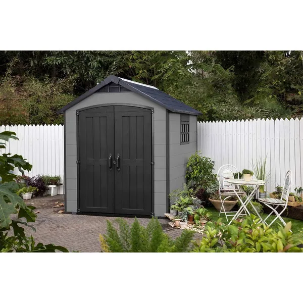A PREMIER 757 kerti ház ideális választás mindazok számára, akik tartós és elegáns tárolási megoldást keresnek kertjükbe. A rendkívül strapabíró, dupla falú kialakításának köszönhetően ez a ház extrém időjárási körülmények között is megőrzi szerkezeti stabilitását. Az időjárás- és UV-álló anyag lehetővé teszi, hogy a ház karbantartás nélkül hosszú éveken át megőrizze minőségét.