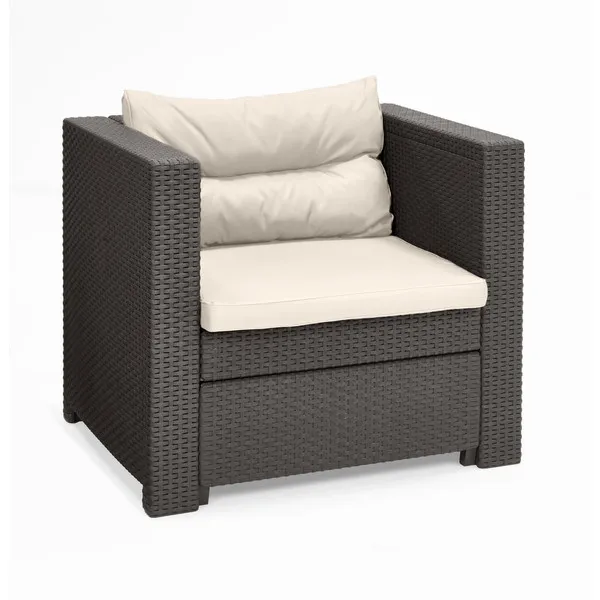 A Provence ArmSzék egy elegáns és kényelmes kerti fotel, mely kényelmes párnákkal kapható. A színek gazdag választéka és a különleges, rattant imitáló mintázat még a legigényesebb vásárlók ízlését is kielégíti. Az UV sugárzásnak és az időjárás viszontagságainak ellenálló, kimagasló minőségű anyagból készül, könnyen tisztítható. A karosszék szerszámok használata nélkül összeszerelhető, így már 10 perccel az összerakás megkezdése után használható!