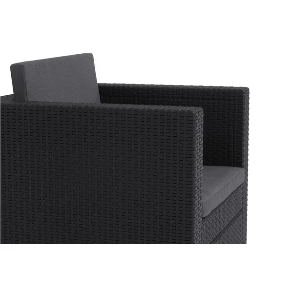 A Provence ArmSzék egy elegáns és kényelmes kerti fotel, mely kényelmes párnákkal kapható. A színek gazdag választéka és a különleges, rattant imitáló mintázat még a legigényesebb vásárlók ízlését is kielégíti. Az UV sugárzásnak és az időjárás viszontagságainak ellenálló, kimagasló minőségű anyagból készül, könnyen tisztítható. A karosszék szerszámok használata nélkül összeszerelhető, így már 10 perccel az összerakás megkezdése után használható!