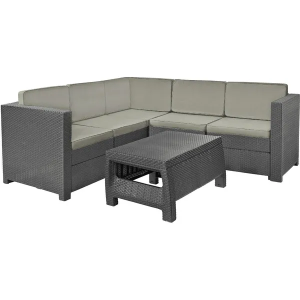 A különleges és nagyon mutatós Provence szett egy sarokkanapét és egy kávézóasztalt tartalmaz. A bútorok természetes megjelenésüket a rattan hatású anyagnak köszönhetik. A bútorok felülete ellenálló a nedvességgel és az UV sugárzással szemben, ami hosszú élettartamot garantál. A Provence szett tökéletesen mutat minden kertben és teraszon.