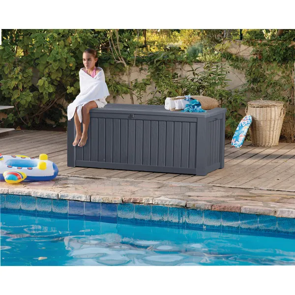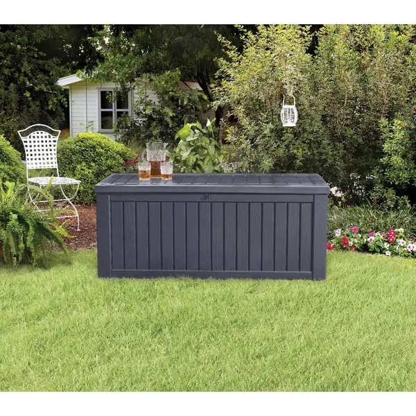 A stílusos Rockwood kerti tároló előnye a nagy kapacitása és az egyszerű összeszerelése. Ezen előnyöknek köszönhetően olyan tárgyak találhatnak helyet maguknak a tárolóban, mint a kerti párnák, ágytakarók, pokrócok, vagy a szükséges kerti szerszámok. A fedél nyitását megkönnyítő mechanizmus a termék további előnyét képezi. Szilárdságának köszönhetően a tároló ülőhelyként is szolgálhat 2 személy számára.