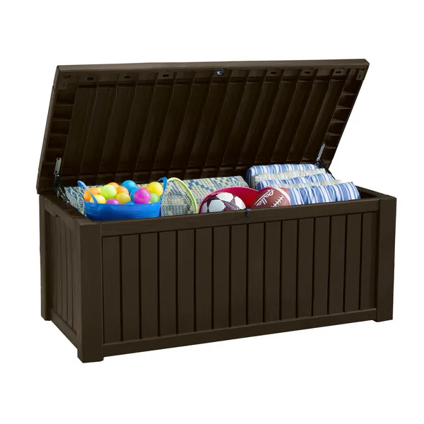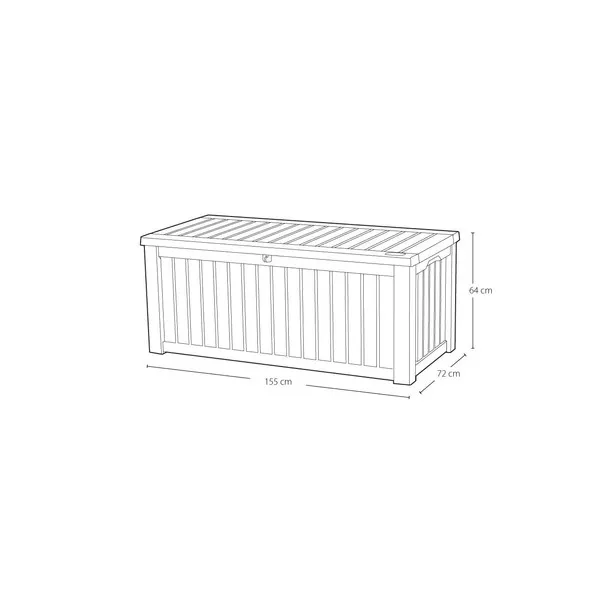 A stílusos Rockwood kerti tároló előnye a nagy kapacitása és az egyszerű összeszerelése. Ezen előnyöknek köszönhetően olyan tárgyak találhatnak helyet maguknak a tárolóban, mint a kerti párnák, ágytakarók, pokrócok, vagy a szükséges kerti szerszámok. A fedél nyitását megkönnyítő mechanizmus a termék további előnyét képezi. Szilárdságának köszönhetően a tároló ülőhelyként is szolgálhat 2 személy számára.