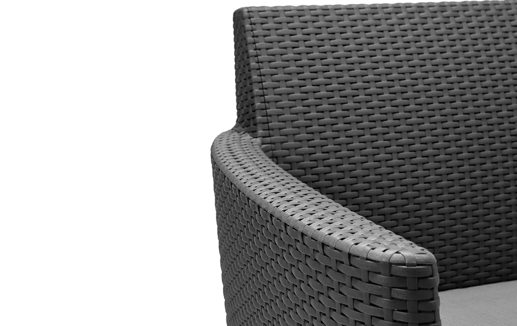 Korszerű, áramvonalas forma, komfortérzet és kiváló minőség. Mindezek a Salemo kétszemélyes kanapéjának előnyei, mely a Salemo termékcsalád más bútoraihoz is tökéletesen passzol. A természetes nádfonást imitáló textúra növeli a termék esztétikai értékét. A kanapé könnyen tisztítható, összeszerelése egyszerű, ezenfelül ellenáll az időjárás viszontagságainak.