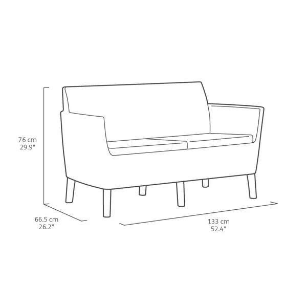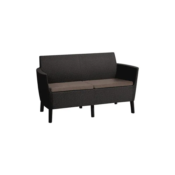 Korszerű, áramvonalas forma, komfortérzet és kiváló minőség. Mindezek a Salemo kétszemélyes kanapéjának előnyei, mely a Salemo termékcsalád más bútoraihoz is tökéletesen passzol. A természetes nádfonást imitáló textúra növeli a termék esztétikai értékét. A kanapé könnyen tisztítható, összeszerelése egyszerű, ezenfelül ellenáll az időjárás viszontagságainak.