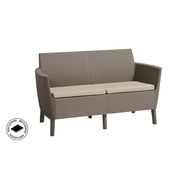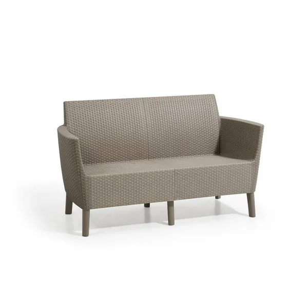 Korszerű, áramvonalas forma, komfortérzet és kiváló minőség. Mindezek a Salemo kétszemélyes kanapéjának előnyei, mely a Salemo termékcsalád más bútoraihoz is tökéletesen passzol. A természetes nádfonást imitáló textúra növeli a termék esztétikai értékét. A kanapé könnyen tisztítható, összeszerelése egyszerű, ezenfelül ellenáll az időjárás viszontagságainak.