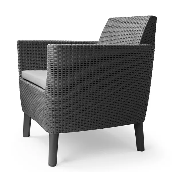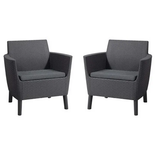 Korszerű, áramvonalas forma, komfortérzet és kiváló minőség. Mindezek a Salemo Duo előnyei. A szett két tágas fotelból áll, melyek a Salemo termékcsalád más bútoraihoz is tökéletesen passzolnak. A természetes nádfonást imitáló textúra növeli a termékek esztétikai értékét. A bútorok könnyen tisztíthatók, összeszerelésük egyszerű, ezenfelül ellenállnak az időjárás viszontagságainak.
