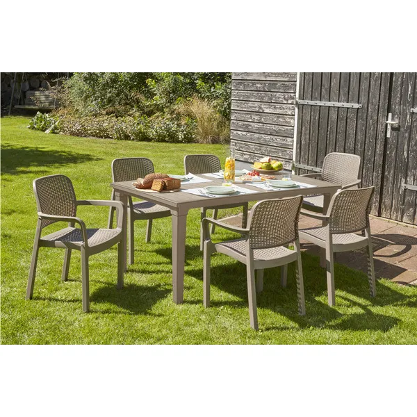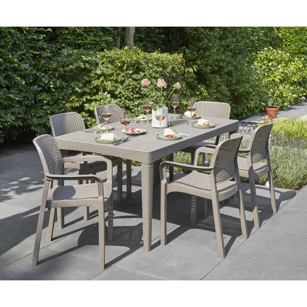 A Samanna a szolid szerkezet és a klasszikus elegancia ötvözete. A kényelmes, megfelelően profilozott, rattan fonás ihlette felület és a stabil kartámaszok optimális kényelmet biztosítanak a felhasználók számára. A terméket magas tartósság jellemzi és ellenáll a sérüléseknek, az időjárás viszontagságainak, valamint az UV sugárzásnak is.