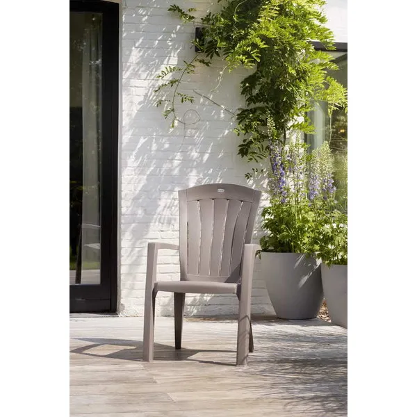 A Santorini egy széles kartámasszal felszerelt, nagyon kényelmes kerti fotel. A terméket könnyű, de egyúttal stabil szerkezet és kiváló tartósság jellemzi. Anyaga ellenáll az időjárás viszontagságainak és az UV-sugaraknak. A széket nagyon könnyű tisztítani, ehhez egyedül egy nedves törlőkendőre van szükség.