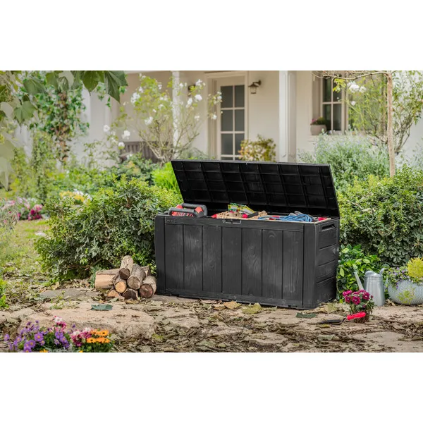 A Sherwood 270L-es kerti tároló előnyei az egyszerű forma, valamint a funkcionalitás és a gyors összeszerelés. Különböző kerti szerszámok tárolására szolgál, legyen szó akár lapátokról, permetezőkről, metszőollókról. A hagyományos színválasztéknak és a fát imitáló felületnek köszönhetően a tároló minden kertbe passzol.