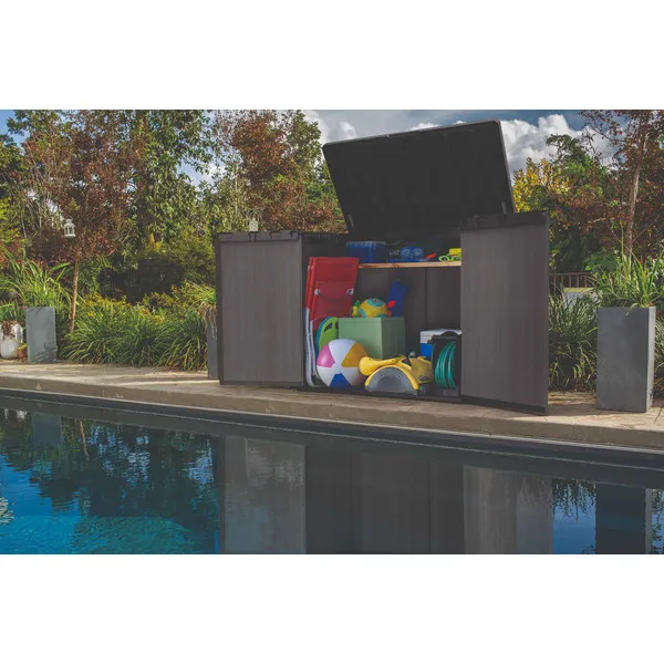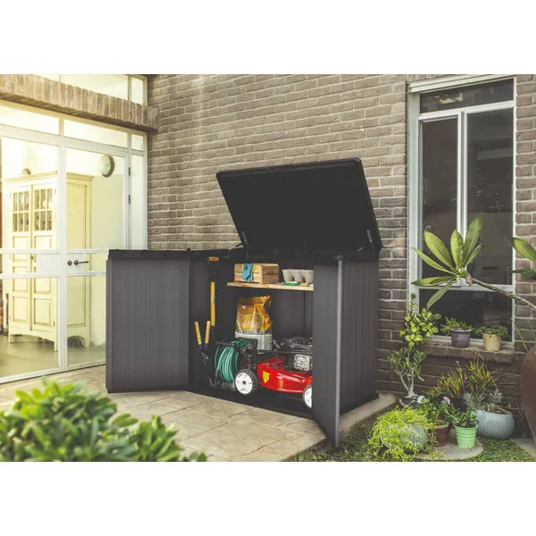 Merüljön el a tökéletes rend és funkcionalitás világában a legújabb Evotech™ kerti fészerünkkel. Ezen remekmű minden részletét gondosan megterveztük, hogy kivételes kényelmet és megbízhatóságot nyújtson Önnek. Az innovatív hidraulikus dugattyúknak köszönhetően a doboz kinyitása igazi élmény – a sima, zökkenőmentes működés biztosítja a könnyű hozzáférést a belsejéhez. Emellett egy láncszett is található a készletben, amely lehetővé teszi a doboz fedélről fedélre történő kinyitását, még nagyobb kényelem érdekében. Értéktárgyainak biztonsága elsődleges fontosságú számunkra, ezért dobozunk zárszerkezettel van ellátva, amely további védelmet nyújt a jogosulatlan hozzáférés ellen. A beépített szellőzés optimális tárolási feltételeket biztosít, megvédve tárgyait a nedvességtől és a kedvezőtlen időjárási körülményektől. Így biztos lehet benne, hogy még a legkényesebb tárgyak is hosszú ideig tökéletes állapotban maradnak. A polcokat a helyükön tartó erős támasztékokkal ellátott ládánk maximális funkcionalitást és térkiosztást kínál. A nyitható tető és a dupla ajtók könnyű hozzáférést biztosítanak a belső térhez, lehetővé téve a kényelmes tárolást és a tárgyak egyszerű eltávolítását és elhelyezését. Az egyszerű összeszerelésnek köszönhetően kertesházunk használata igazi öröm. Mostantól felesleges erőfeszítés és bonyodalmak nélkül élvezheti a tökéletes rendet és szervezettséget a kertjében. Fedezze fel még ma kertesházunk páratlan minőségét és funkcionalitását!