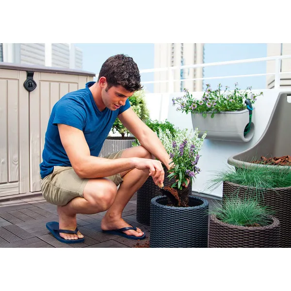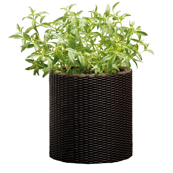 A kert romantikus stílusát feltétlenül ki kell egészíteni néhány különleges tartozékkal, és erre jelentenek kiváló megoldást ezek a kör alakú Small Cylinder Planter virágtartók. A természetes rattan inspirálta fonásminta tökéletesen kiemeli a kert szépségét. A virágtartók kivételesen stabilak és tartósak, dugaszos elfolyónyílással rendelkeznek, amely megkönnyíti a növények öntözésének a szabályozását. Ellenáll az időjárás viszontagságainak, anygának köszönhetően pedig könnyű tisztán tartani.