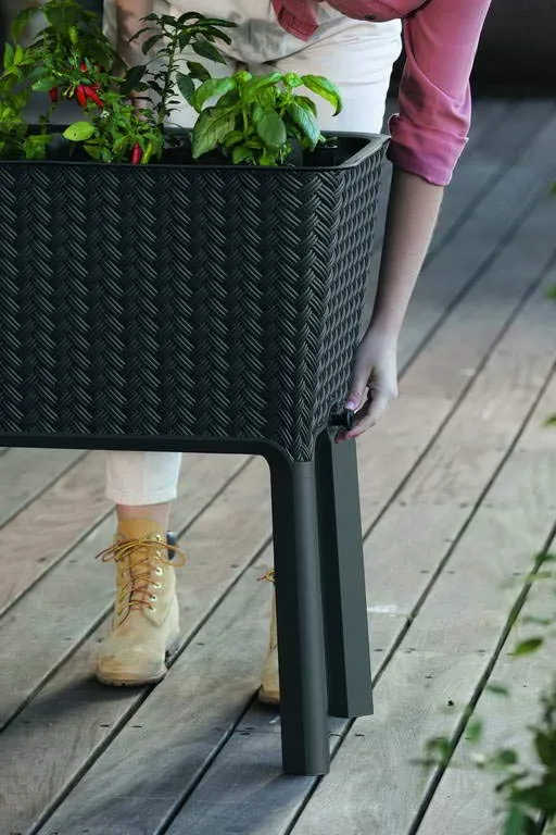 A magas lábakon álló Splendor virágtartó átgondolt, különleges és tartós szerkezete lehetővé teszi különböző virágok, gyógynövények és zöldségek termesztését. A termék belsejében elhelyezett vízszintjelző segíti a megfelelő öntözés ellenőrzését, megvédve ezzel a növényeket a túlöntözéstől. Kiválóan alkalmas a növénytermesztésre és szépen mutat a kertben, az erkélyen és a teraszon is.