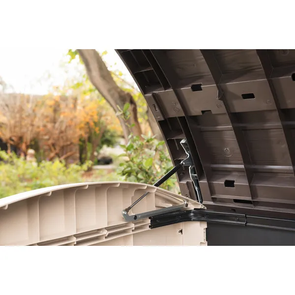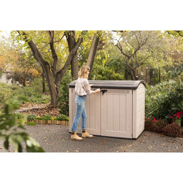 A nagy kapacitású Store It Out Ultra tároló kitűnő megoldás különböző kerti eszközök, tartozékok és szerszámok, valamint otthoni eszközök tárolására. Ideálisan elférnek benne a szabadidős eszközök is, mint például a kerékpárok, valamint a kerti bútorok is. A nyitható fedél és a kétszárnyú ajtó megkönnyítik a hozzáférést a tárolóban tárolt tárgyakhoz. Az optimális méretek és a vízszintes szerkezet lehetővé teszik a termék legjobb elhelyezését a kertben. Magas minőségű anyagokból készült, hatékonyan megvédi a benne tárolt tárgyakat az időjárás viszontagságaitól, szennyeződéstől és a nedvességtől.