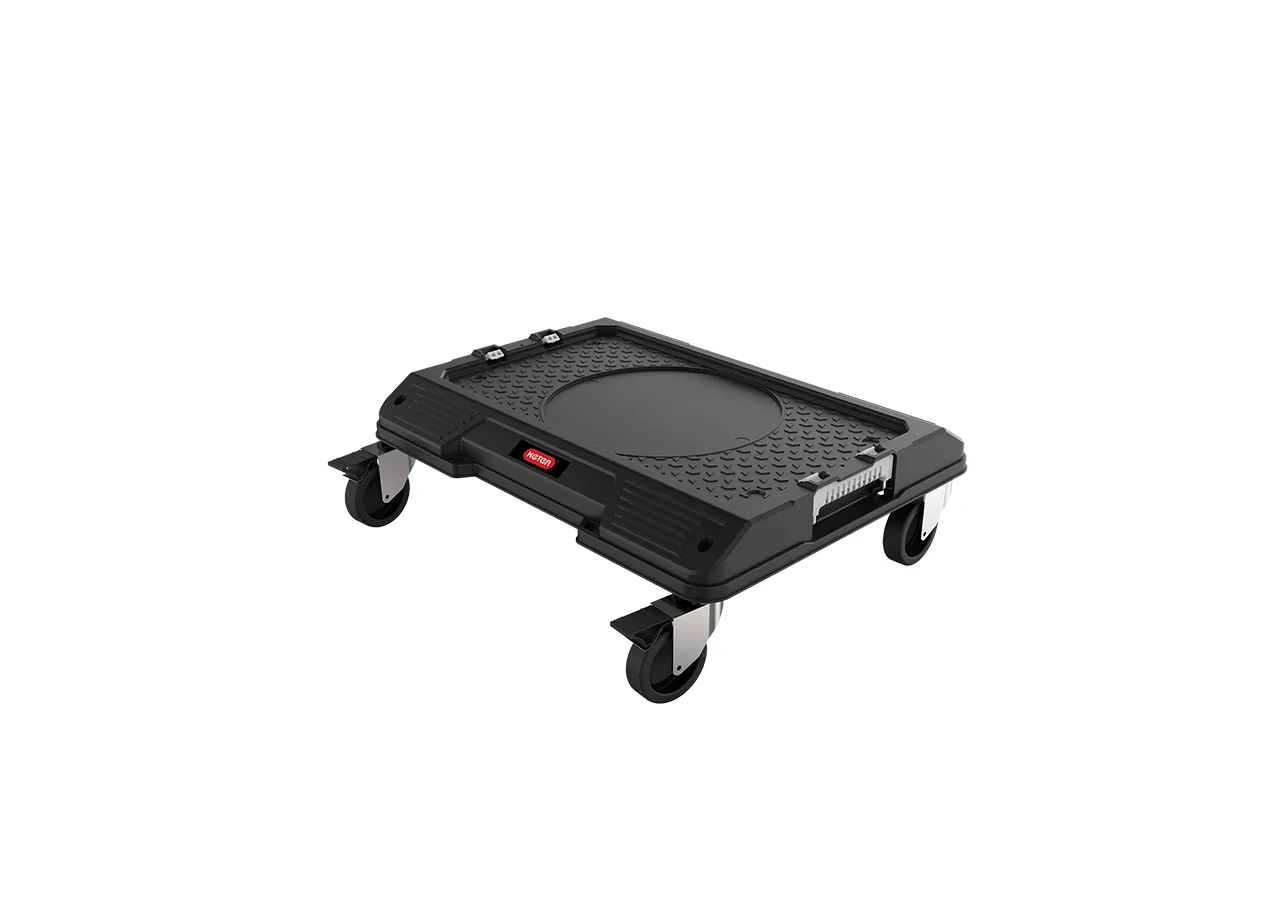 A Connect Rolling System kiskocsijának köszönhetően a barkácsfelszerelésed mobilis és rendszerezett! A könnyű és strapabíró Connect Trolley-t úgy tervezték, hogy akár 100 kg szerszámot és tartozékot is hatékonyan szállítson. Akár a Connect szerszámosládák és rendszerezőt rögzítését választod, akár egy 18 literes betonvödör felpakolását, ez a kocsi elvégzi a munkát! A gumikerekek könnyedén szállítják felszerelését, a fékrendszer pedig a célba érkezés után rögzíti a kerekeket.