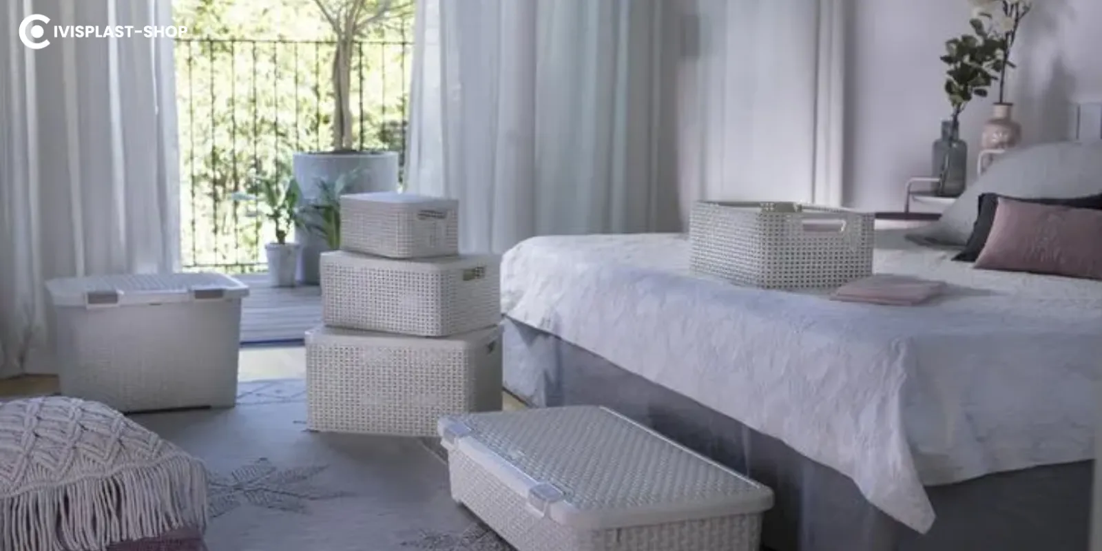 Hasonlóképp hasznosak az ágy alatti tárolók: válasszunk olyan ágykeretet, amely beépített fiókokkal rendelkezik, vagy használjunk görgős tárolódobozokat az ágy alatt. Ezekben egyszerűen tárolhatunk ágyneműt, szezonális ruhákat vagy éppen cipőket.